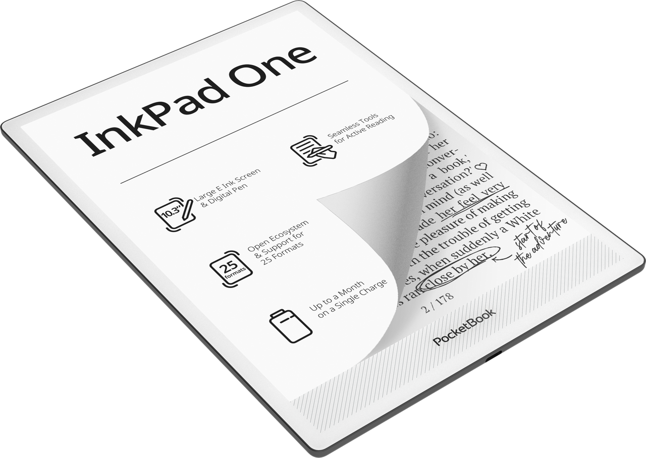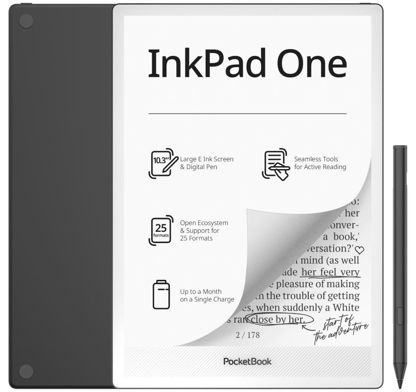 PocketBook tutvustab aktiivseks lugemiseks ja mugavaks käsitsi kirjutamiseks loodud uut puutepliiatsiga 10,3-tollist e-lugerit InkPad One. Seadmel on paberile sarnanev E Ink Mobius™ ekraan ja komplekti kuulub digitaalne pliiats loomulikuks märkmete tegemiseks. Lisaks on seadmel lai valik sisseehitatud kirjutustööriistu. InkPad One on taskukohane suure ekraaniga lahendus lugemiseks, kirjutamiseks ja igapäevaseks produktiivsuseks.